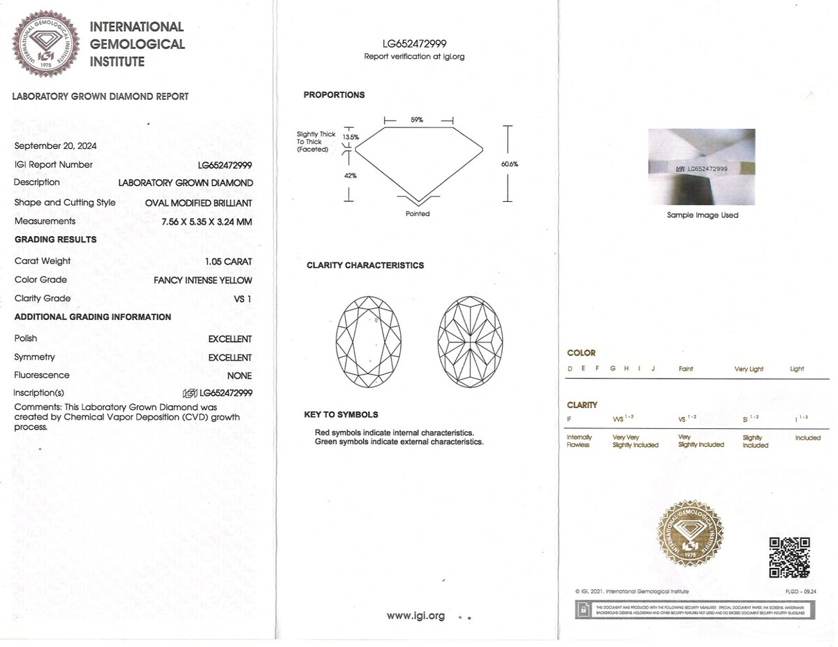 L'anneau est livre avec le certificat international de l'Institut gemologique (IGI) # LG652472999