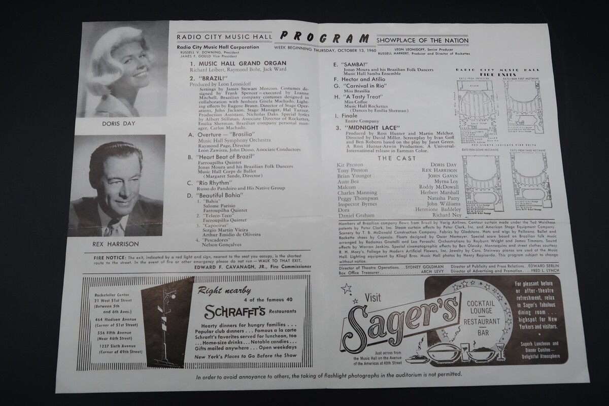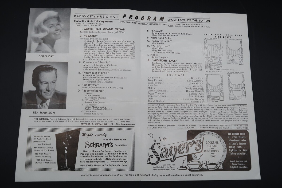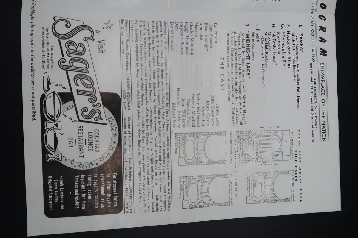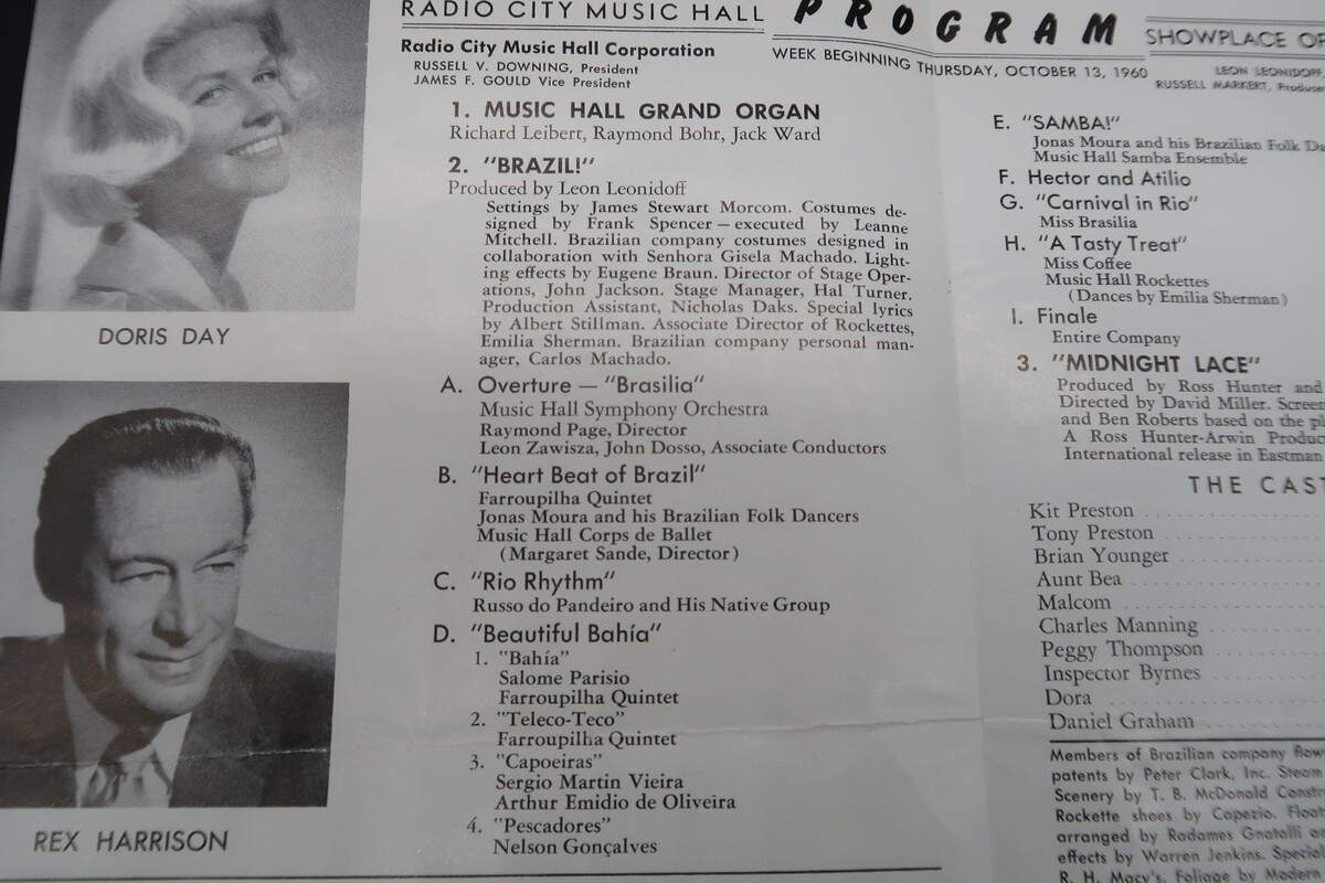 Vtg Showplace Radio City Music Hall Oct 13, 1960 Doris Day Rex Harrison Program