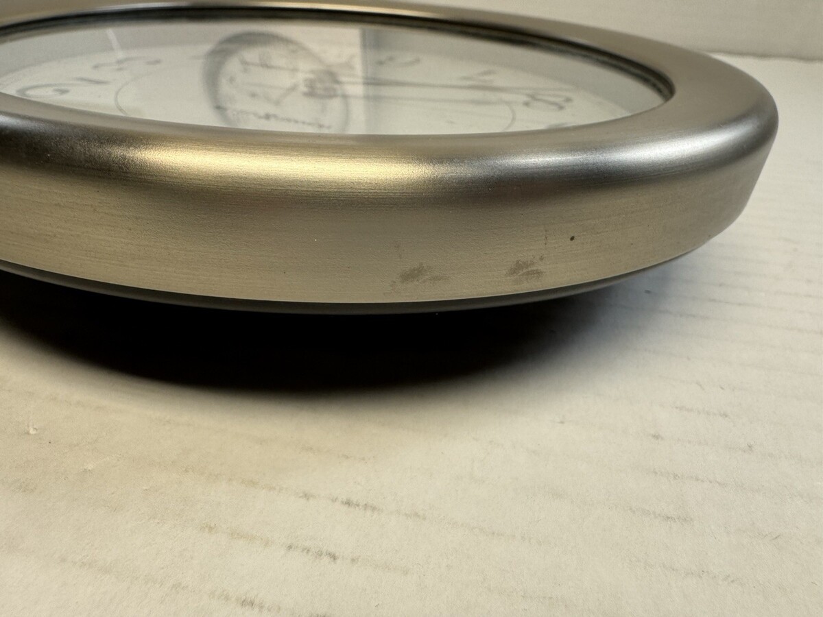 clock, featuring a brushed nickel-finished case that blends seamlessly with any