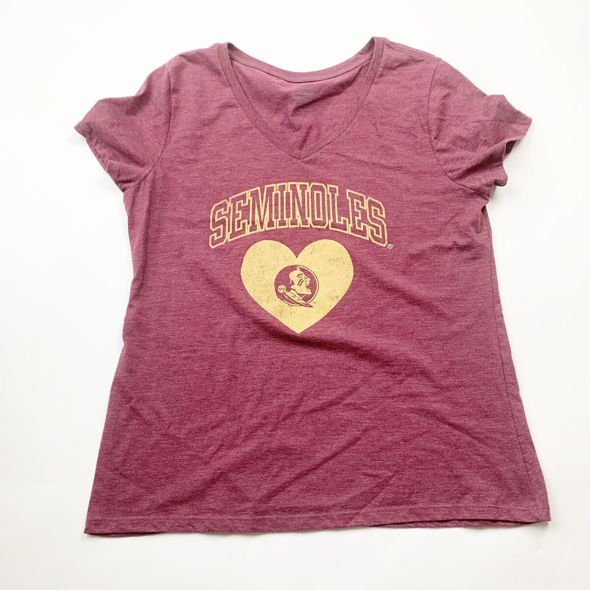 National Collegian Womens Top Florida State University FSU Seminoles Size L Maroon Heart Logo