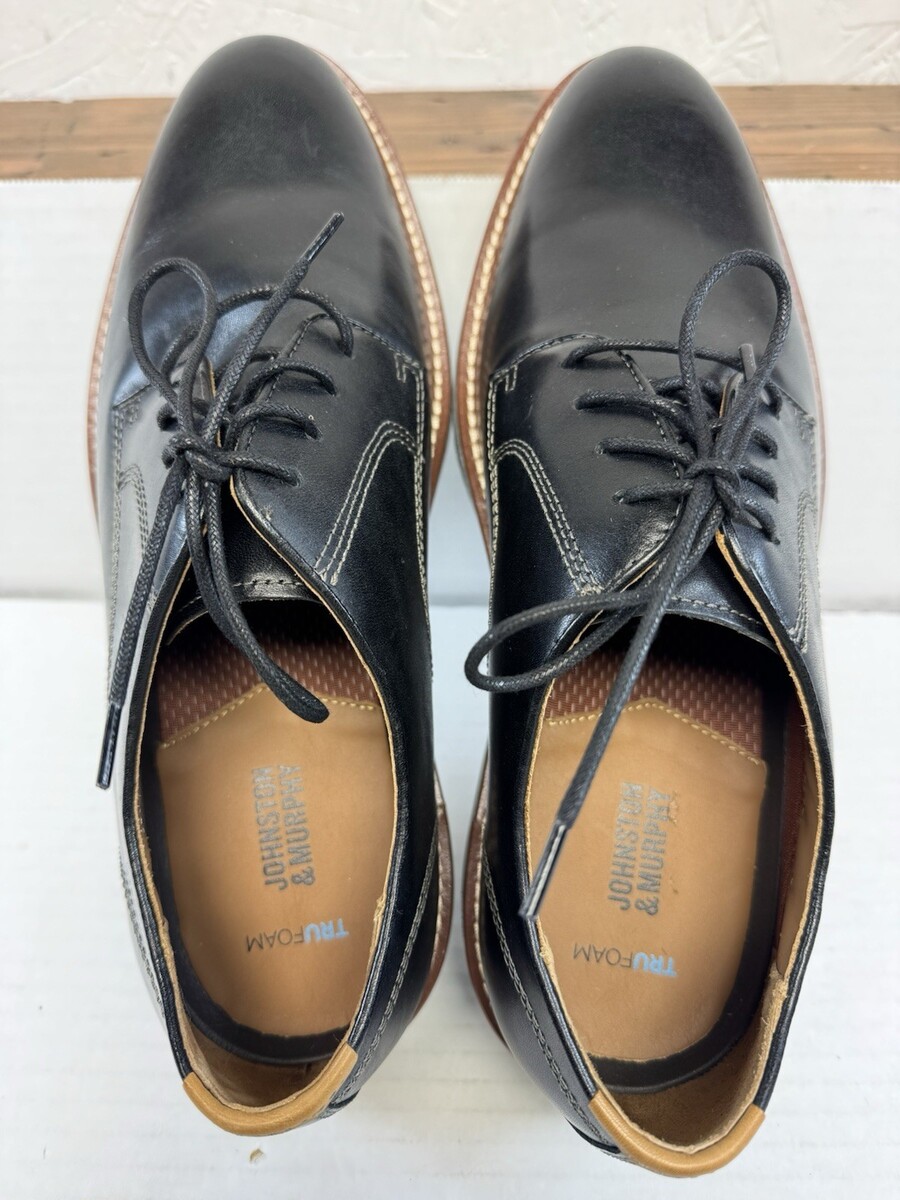 Johnston & Murphy Upton Plain Toe, Wide Shoe, Black Full Grain 10 Wide