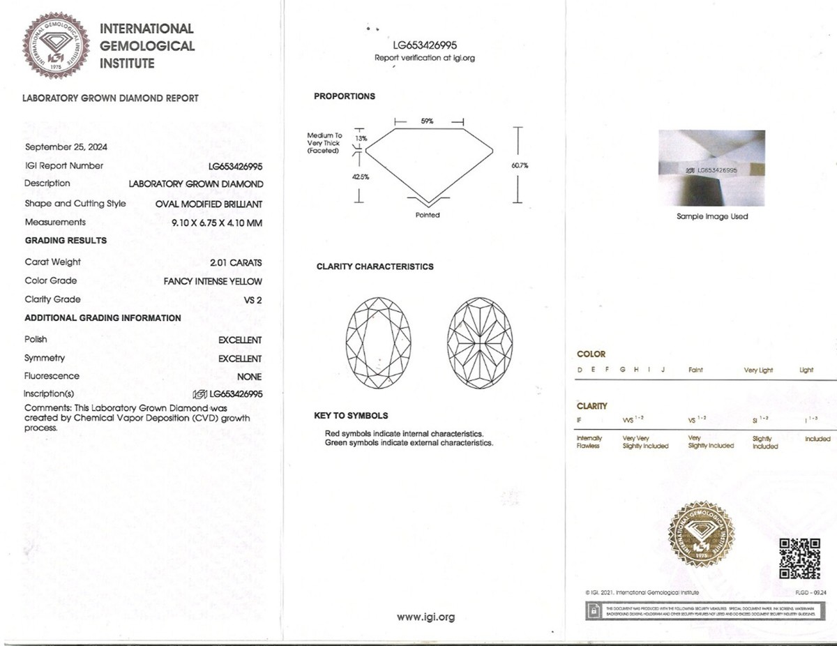 The ring comes with International Gemological Institute certificate (IGI) #653426995