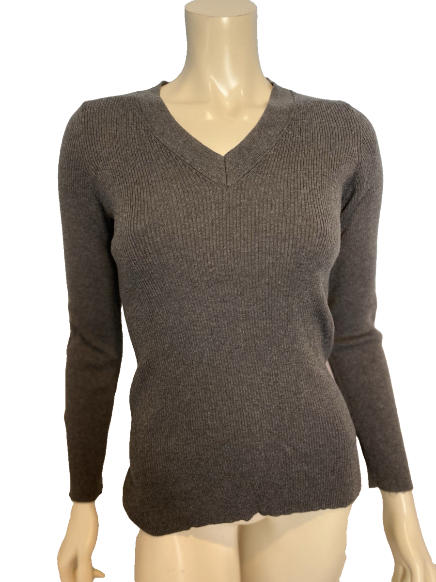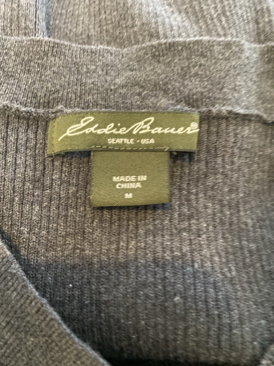 Eddie Bauer Dark Gray Ribbed Knit V Neck Long Sleeve Sweater Size M