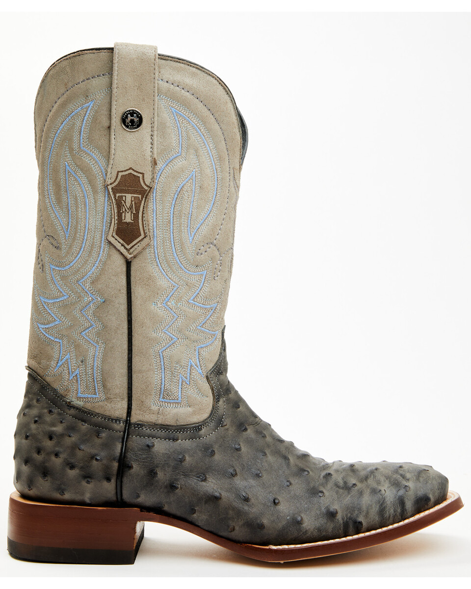 Tanner Mark Men's Ostrich Print Western Boots - Broad Square Toe