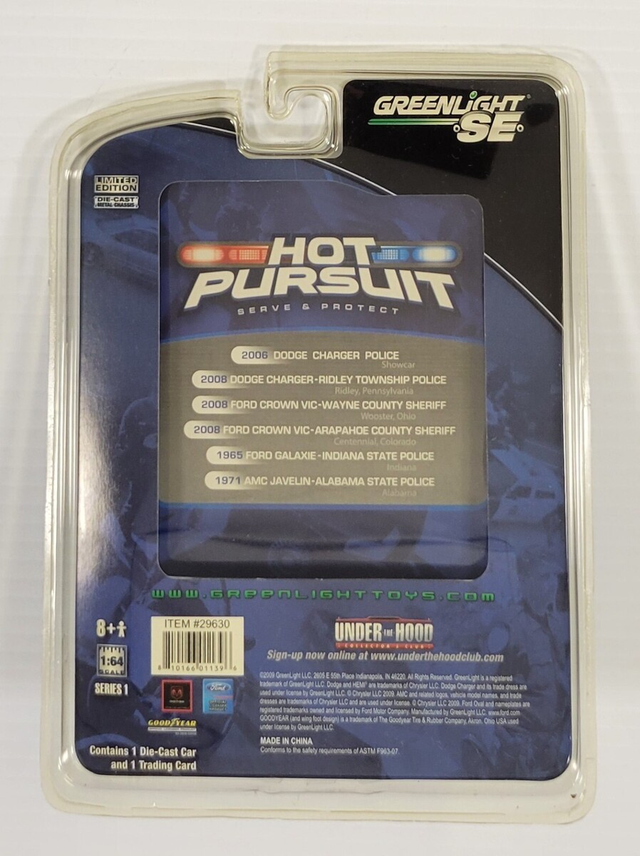 Greenlight Hot Pursuit Diecast Metal Car and Trading Card