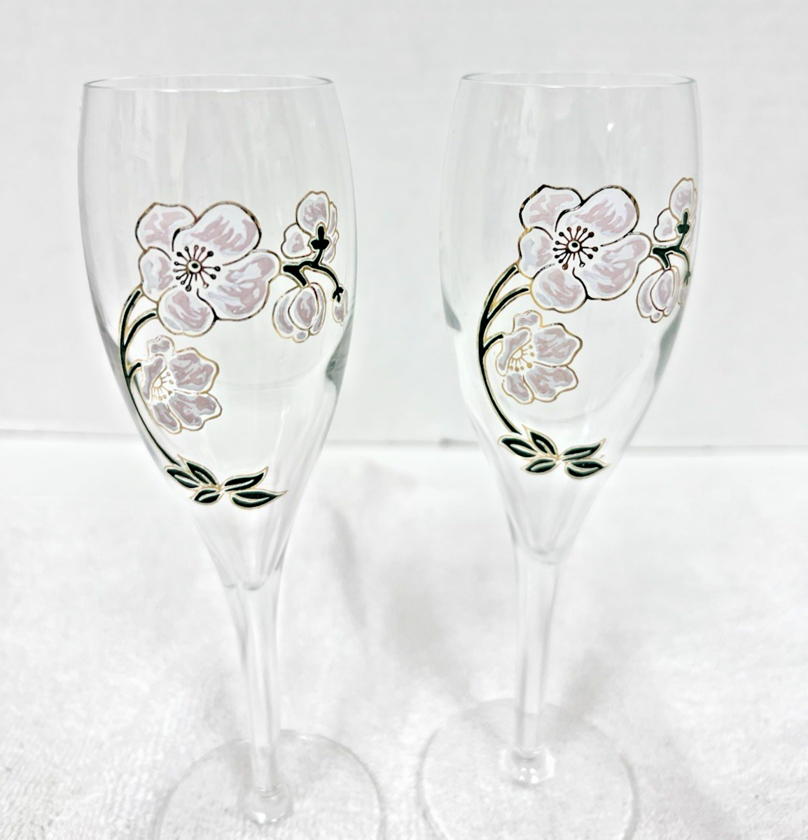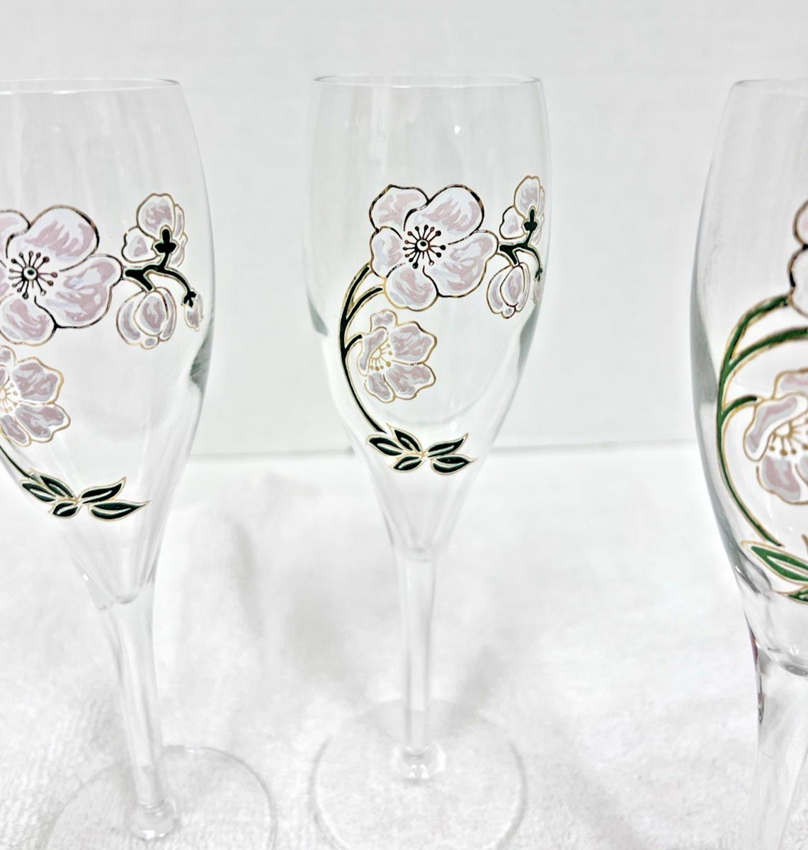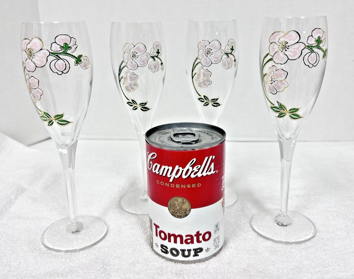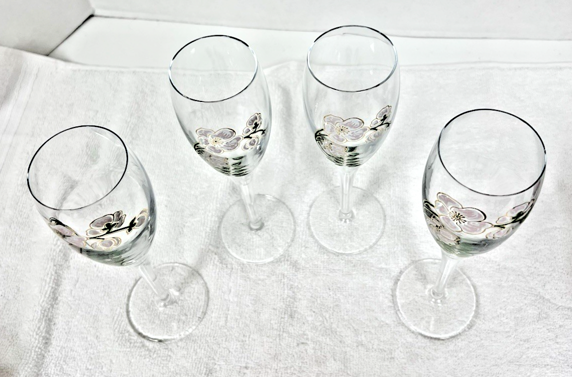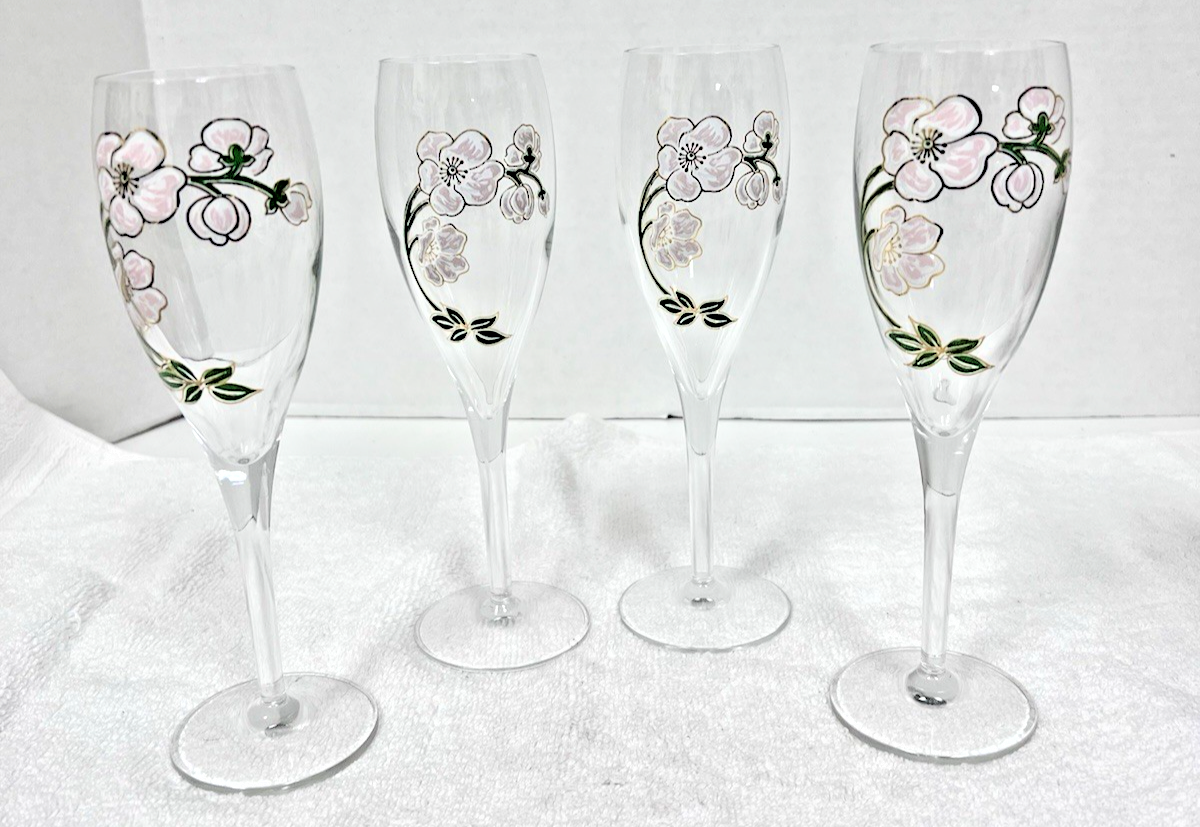French Perrier Jouet Belle Epoque Fleur Champagne Hand Painted Flutes Set of 4