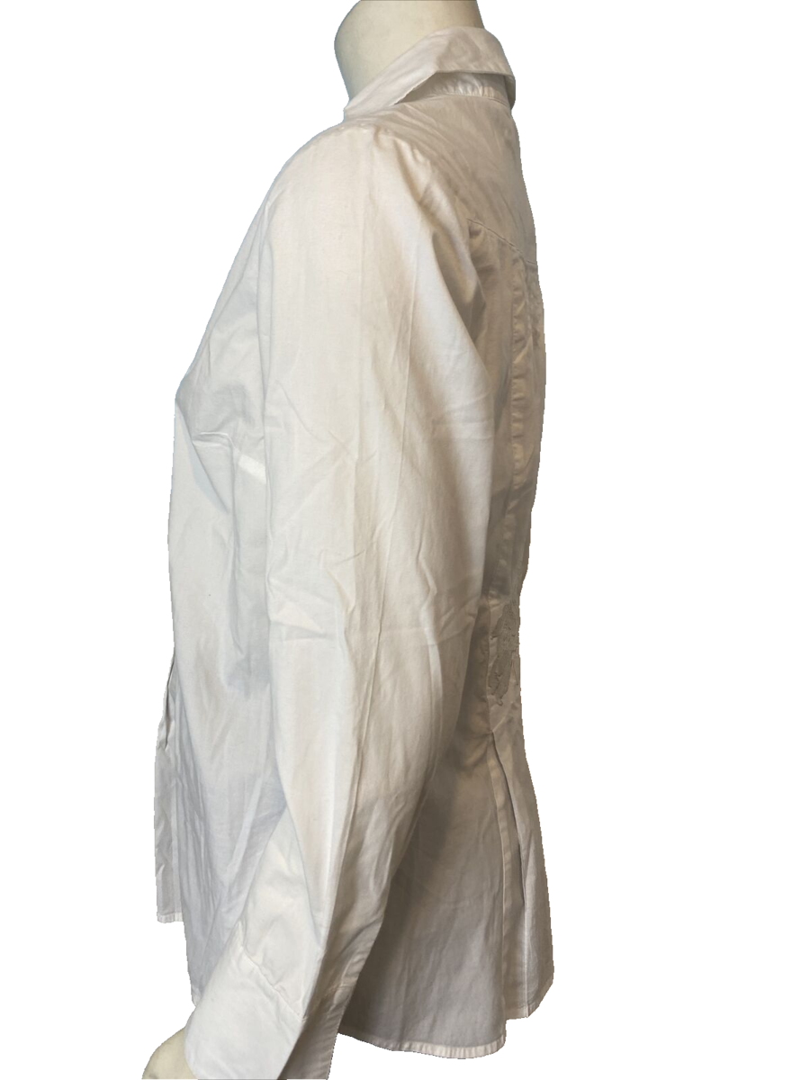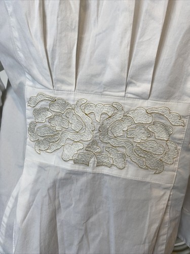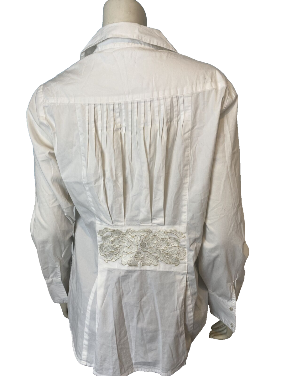 Soft Surroundings White Long Sleeve V Neck Blouse with Pin tuck Pleats and Embroidery
