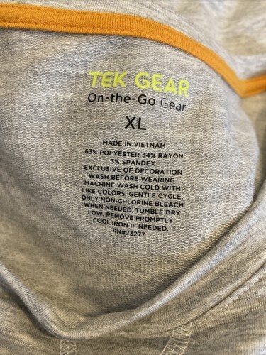 NWOT Tek Gear Gray Round Neck Short Sleeve Athletic Top Size XL