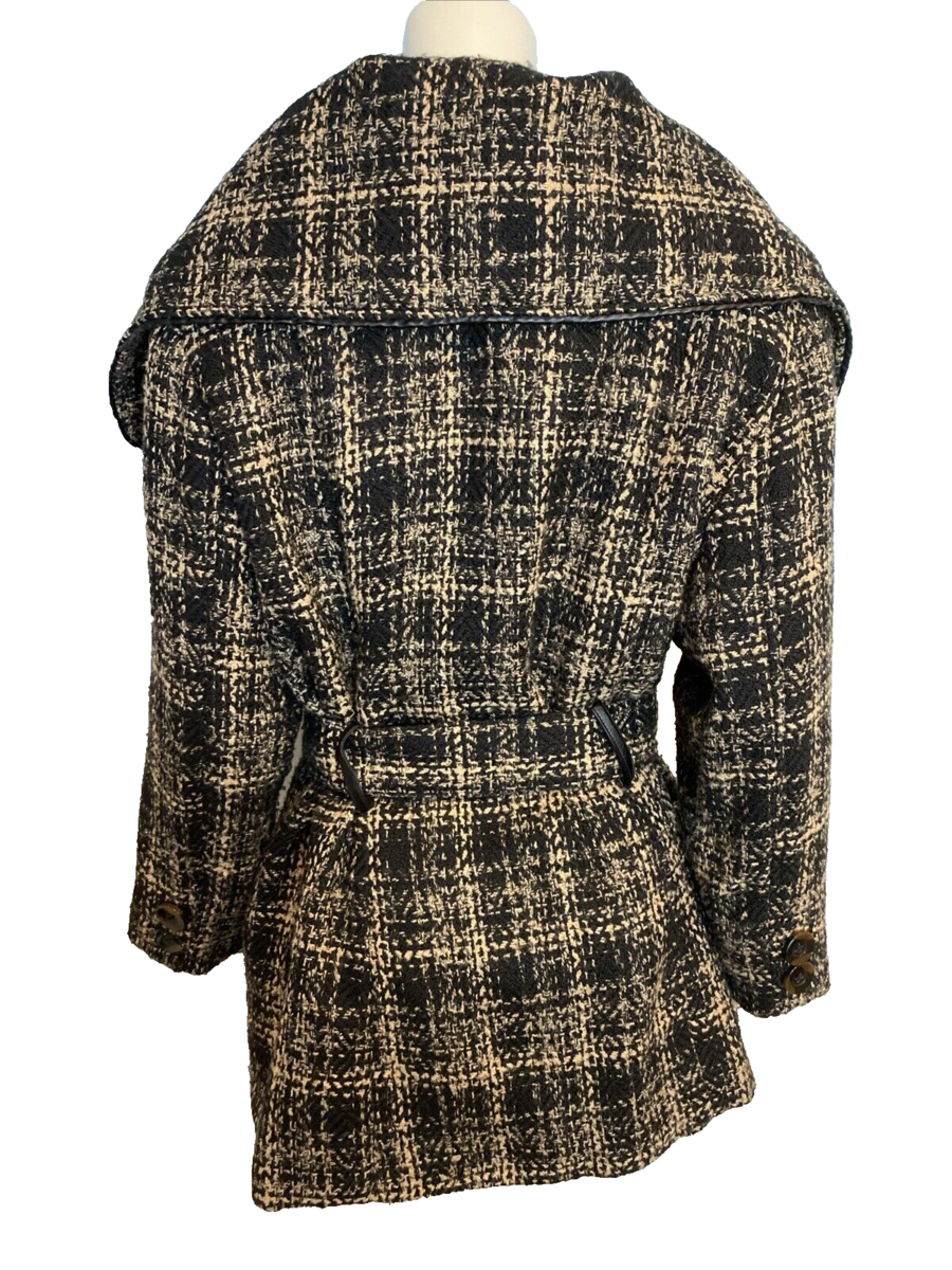 Lane Bryant Black Tan Plaid Lined Button Front Coat