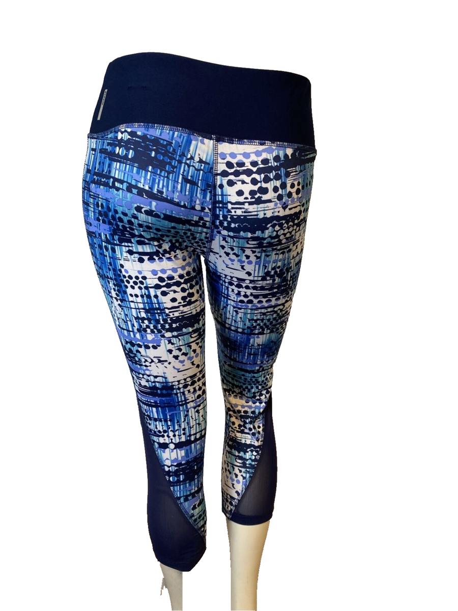 RBX Navy, White, Light Blue Print Athletic Cropped Leggings Size M