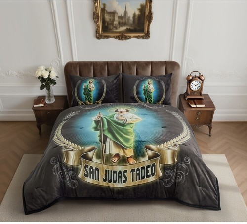SAINT JUDE THADDEUS BLANKET WITH SHERPA SOFTY THICK & WARM 3 PCS QUEEN SIZE