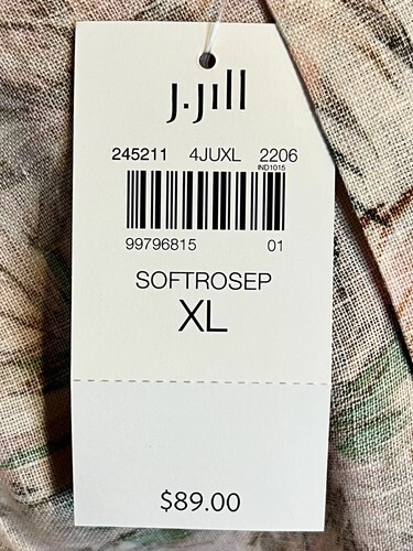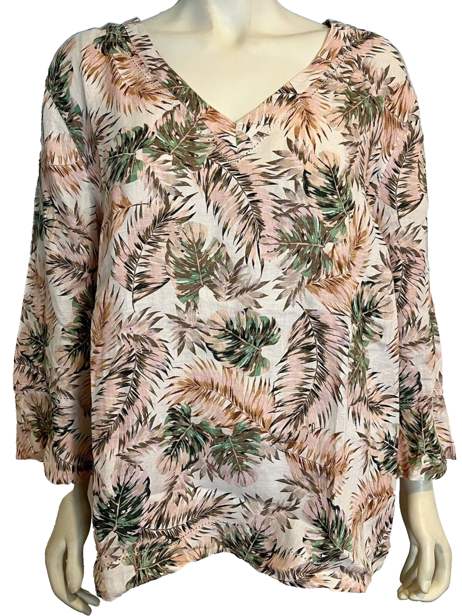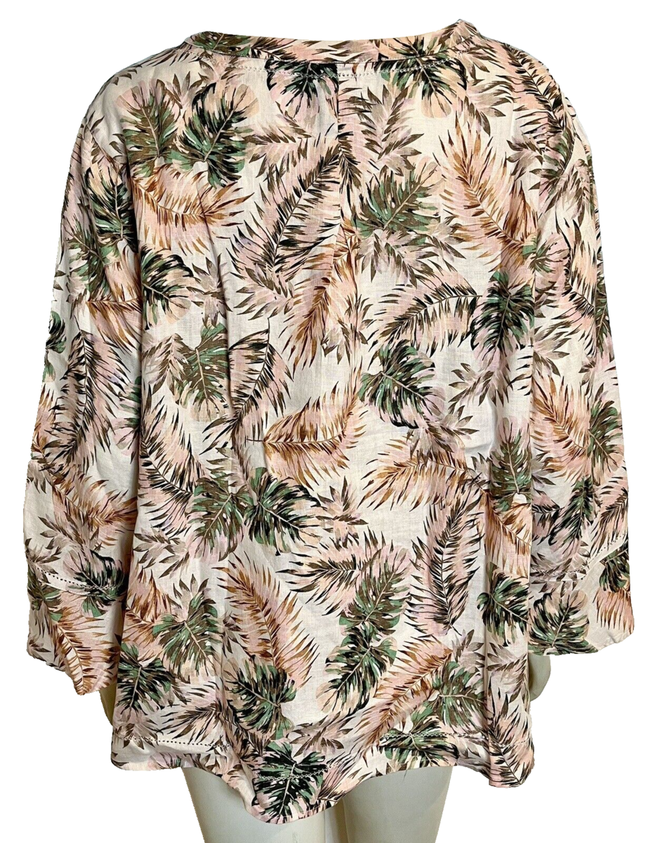 NWT J.Jill Pink Floral V Neck Linen 3/4 Bell Sleeve Top Size XL