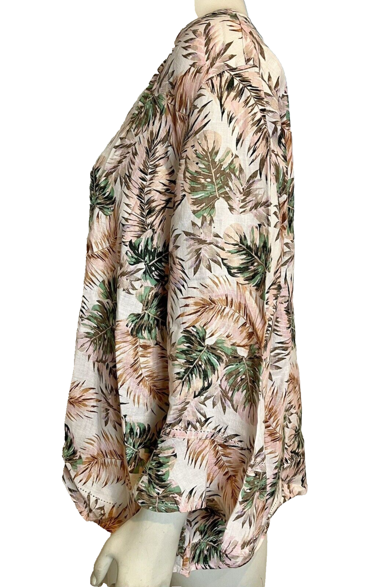 New with Tags! J.Jill Pink and Green Floral V Neck 3/4 Bell Sleeve Linen Top