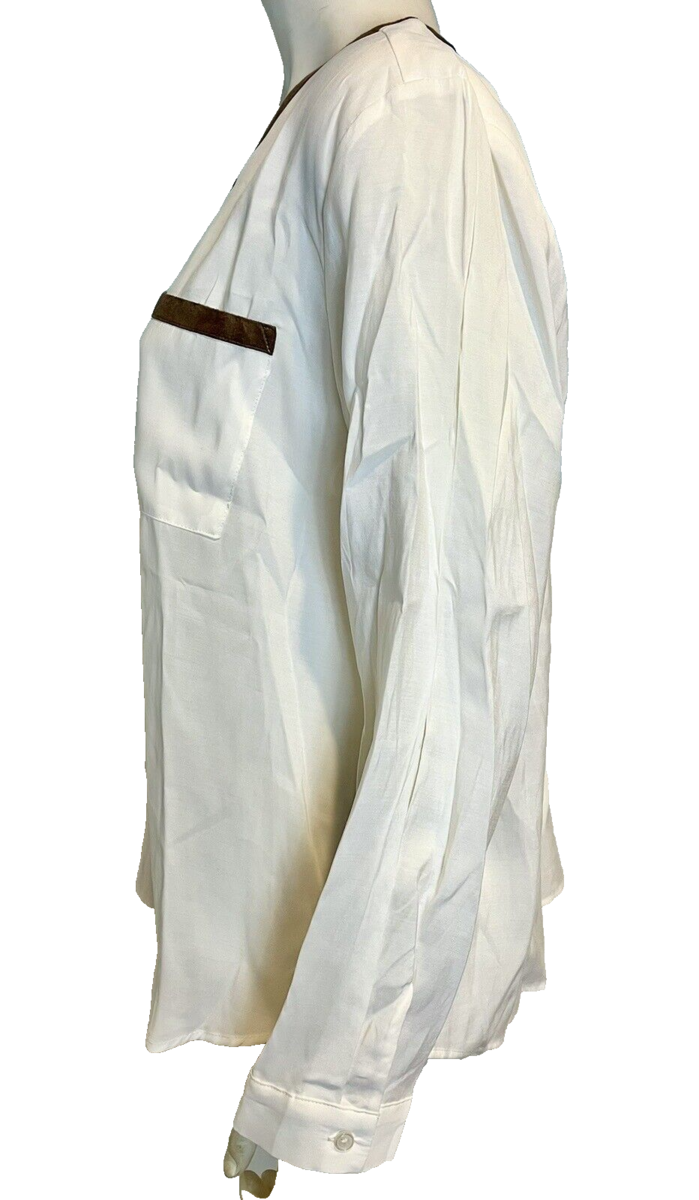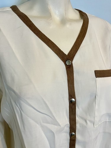NWT Chico's Ecru Long Sleeve V Neck Blouse with Suede Trim Size XL