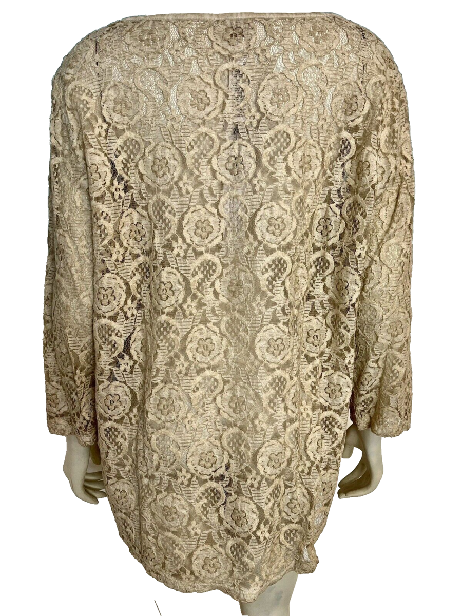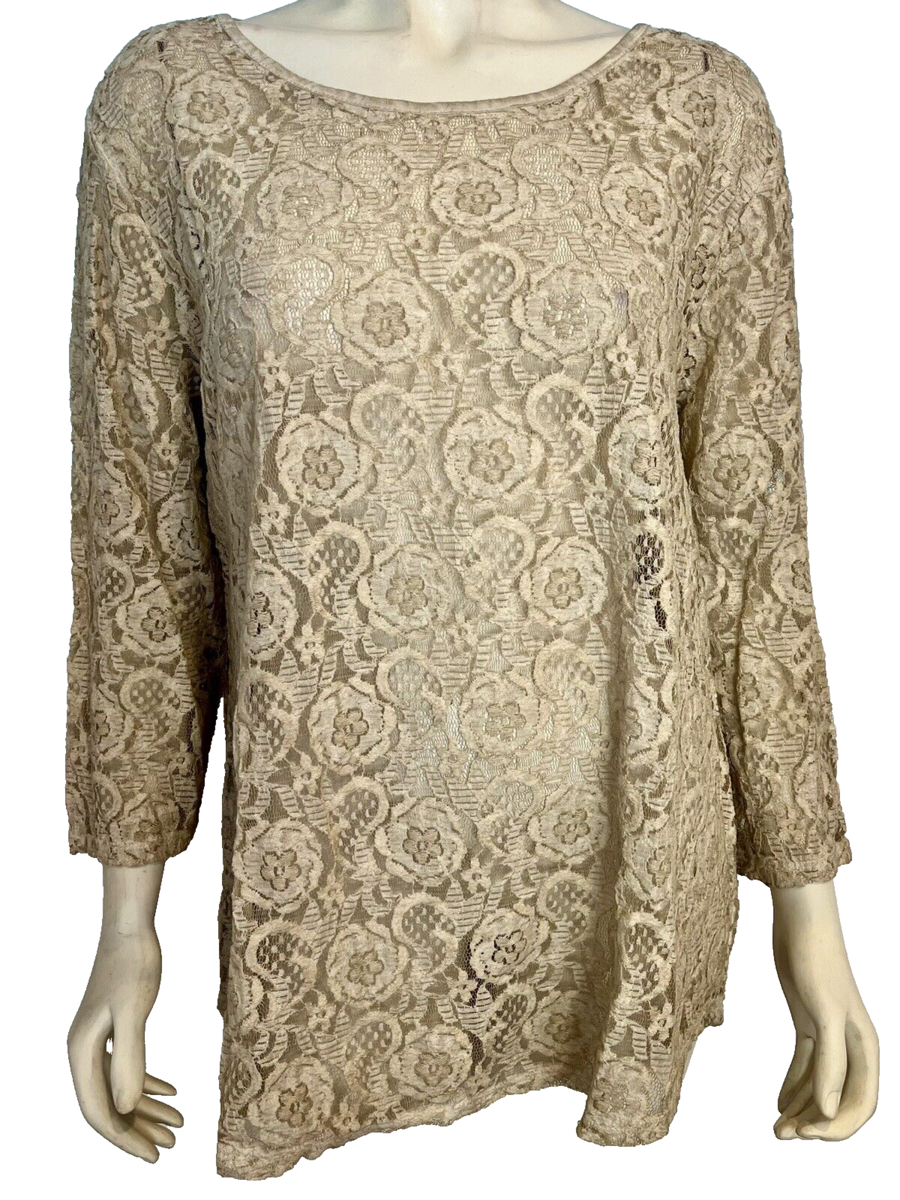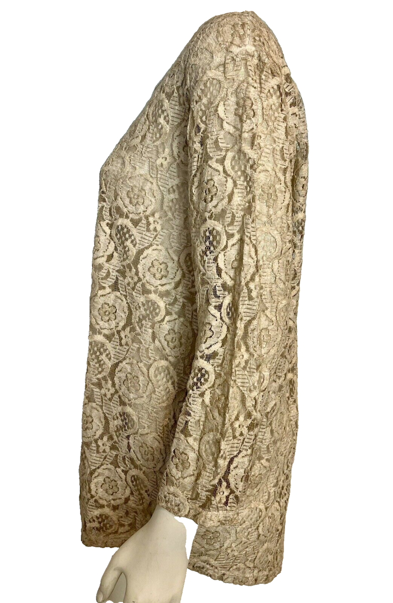 NWT Chico's Gold Linen Lace Long Sleeve Scoop Neck Top Size XL