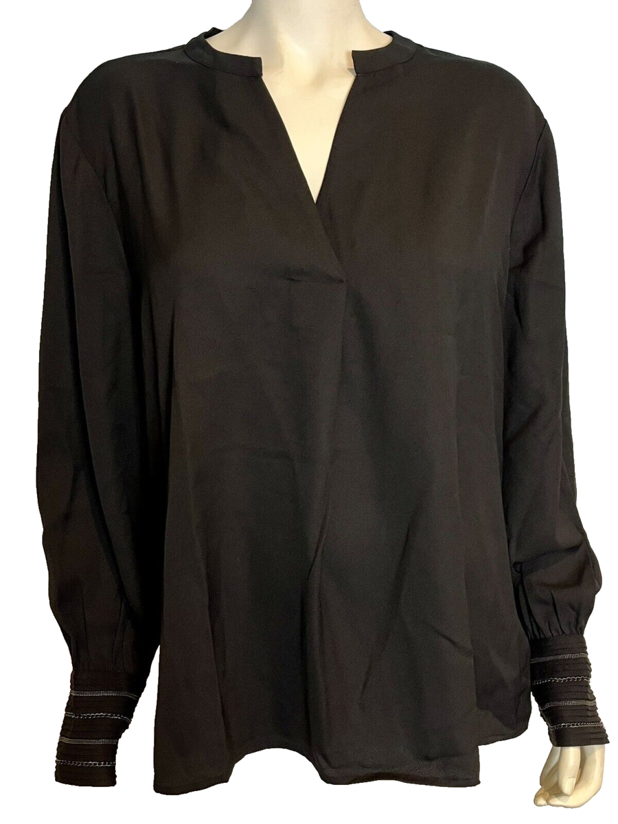 NWT Chico's Black V Neck Long Sleeve Pullover Top Size XL