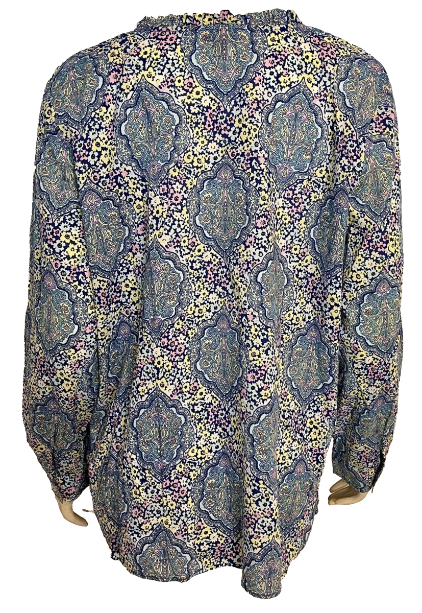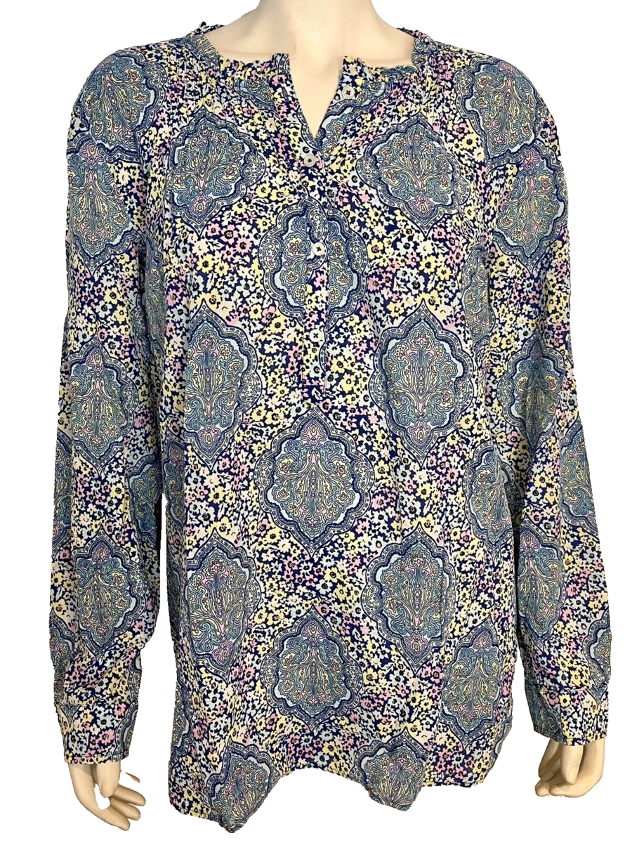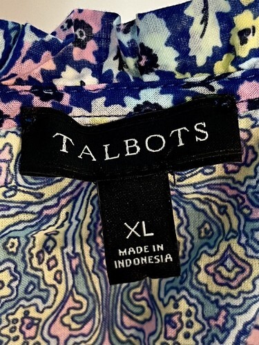 Talbots Blue, Pink, Yellow Floral Print Long Sleeve Blouse Size XL