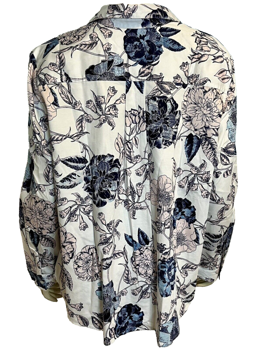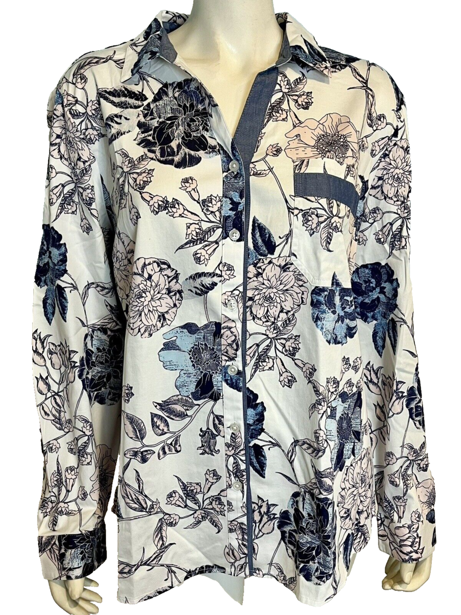NWT Chico's Blue and Pink Floral Blouse Long Sleeve Size XL
