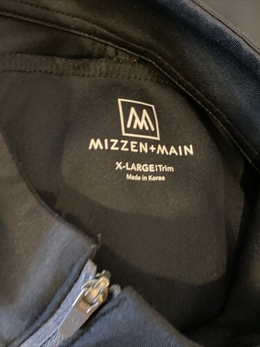 Mizzen + Main Black Long Sleeve Stand Up Collar Athletic Top 1/4 Zip Sz XL Trim