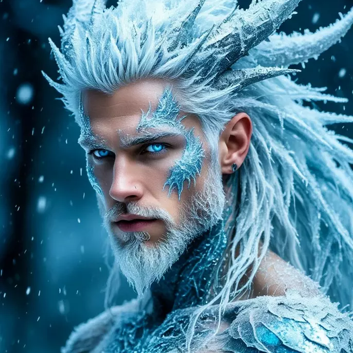 You are looking at a RARE Thulean Frost Guardian. Aelthar doesn't just hail from a lost civilization; he is the essence of a land swallowed by glaciers. His silver hair glints like the moon on a fresh snowfall, and he’s marked with actual shimmering ice crystals. He’s muscular, imposing, and looks perpetually annoyed that he's not currently standing on a pristine, frozen mountain peak.