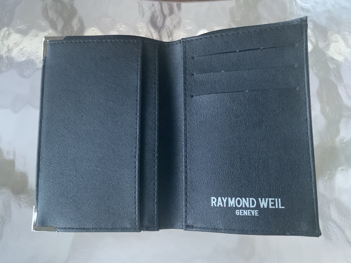 Raymond Weil Geneve Bifold Black Leather Card Holder Wallet Case 5” x 3” NIB