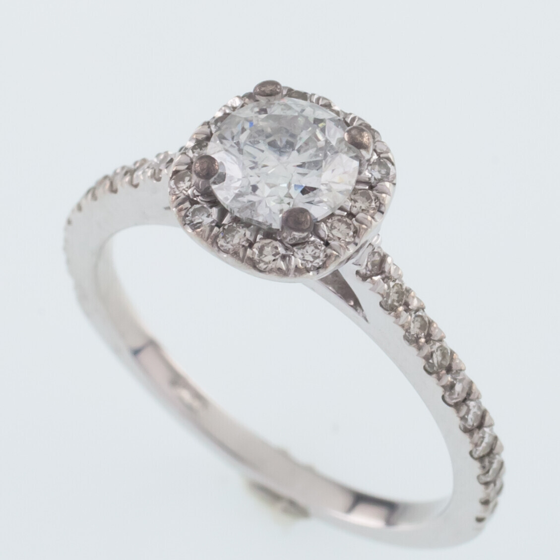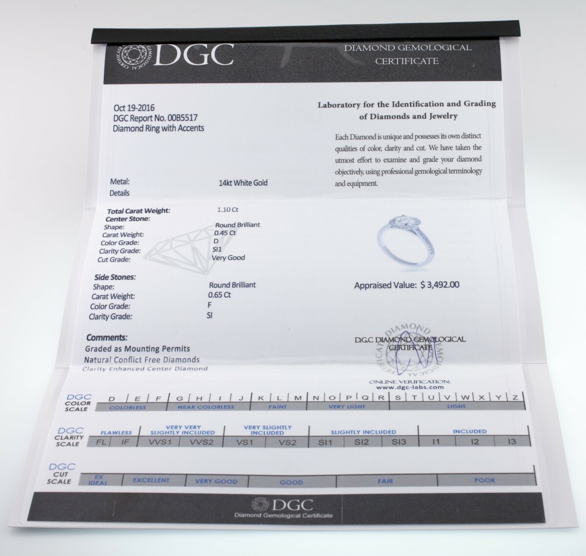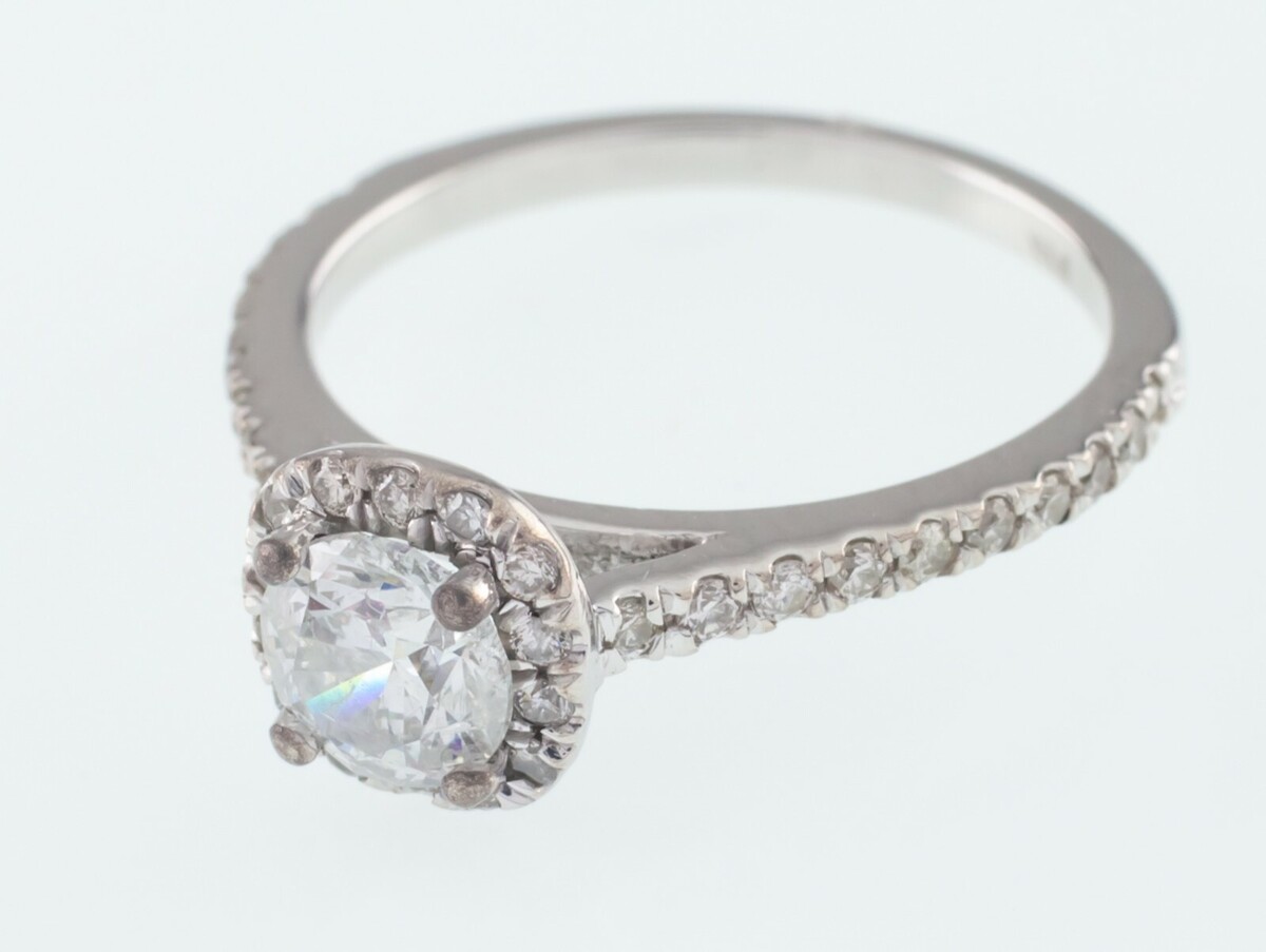 14k White Gold Diamond Solitaire Ring W/ Accents TDW 1.10 ct Size 3.75 W/ Cert