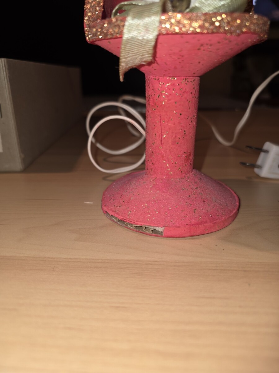 READ Amico Red/Pink Gold Trim Christmas Vintage 1965 Candle Light Paper Machet