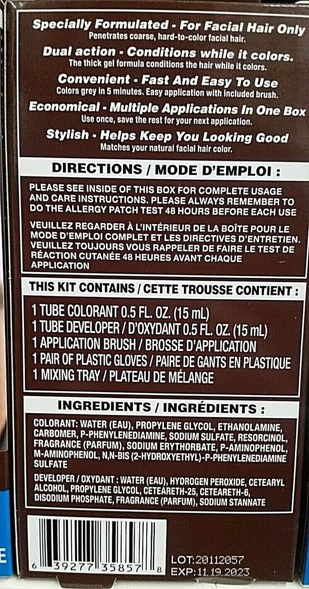 Each brush-in color gel kit has everything you need to cover up the gray in beards, mustaches,