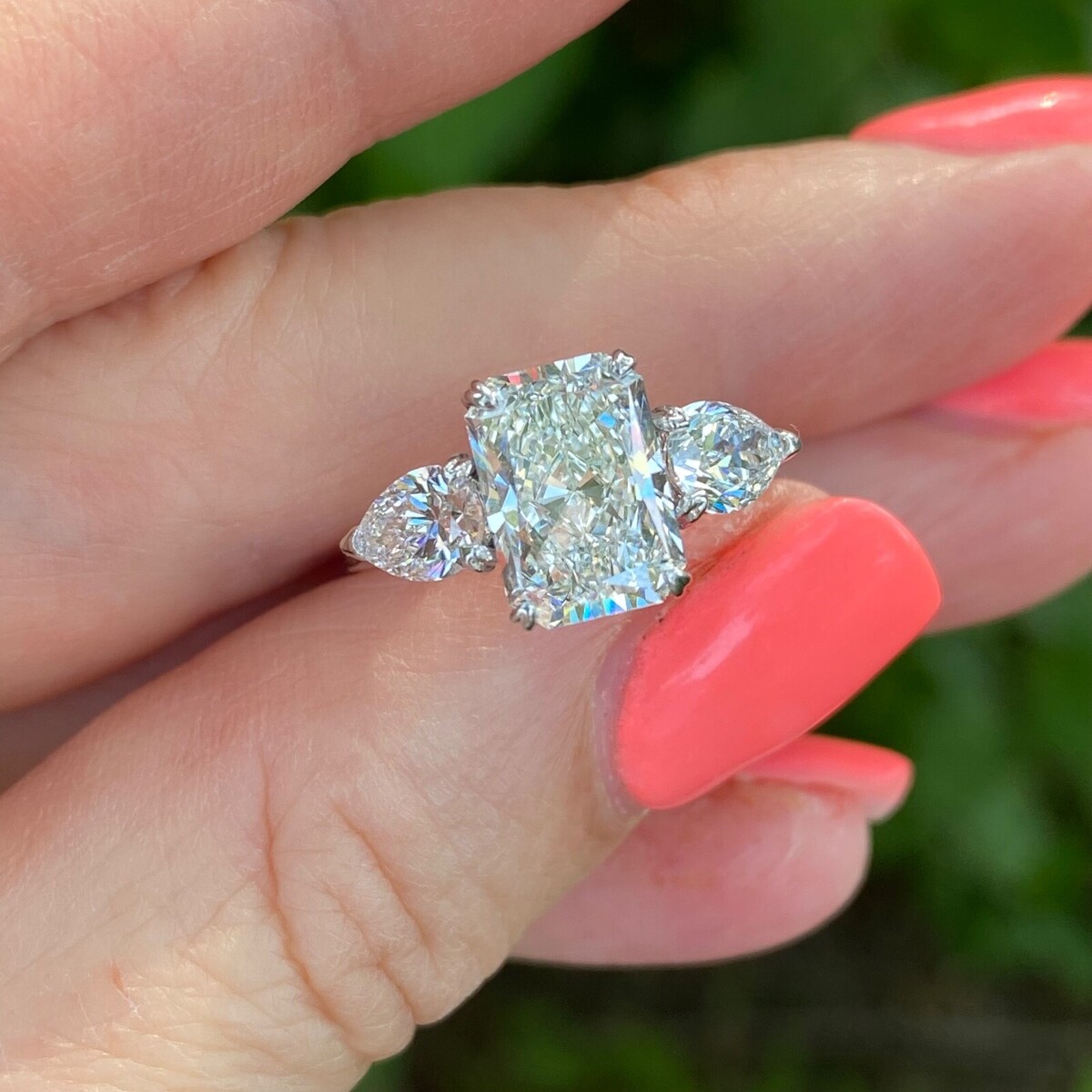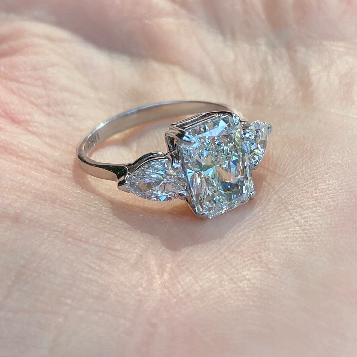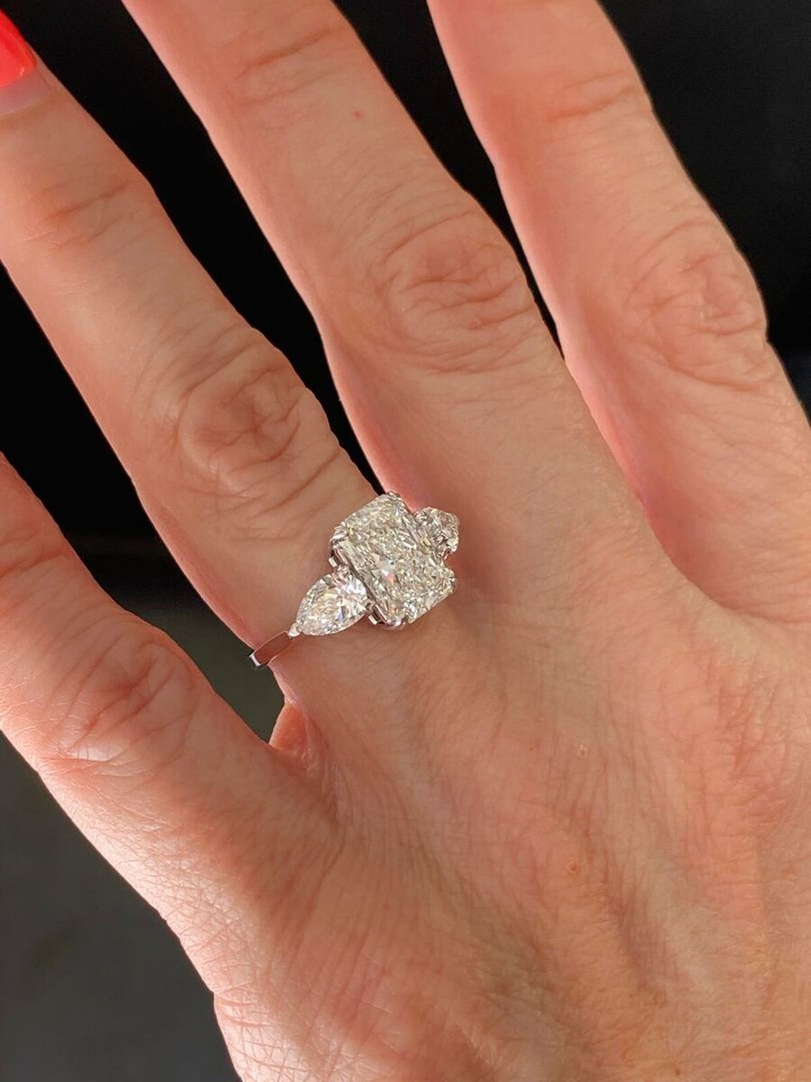 3-Stein-Verlobungsring IGI 2,72 ct E-VS1 Lab Grown Radiant Cut Diamond 14k Gold