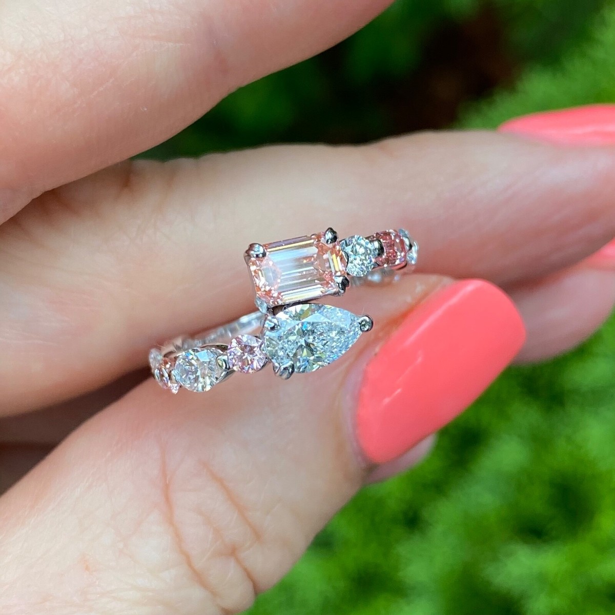Deux Pierre 2.40 CT Rose Émeraude Coupe & Poire Labo Grown Diamant Bypass Bague