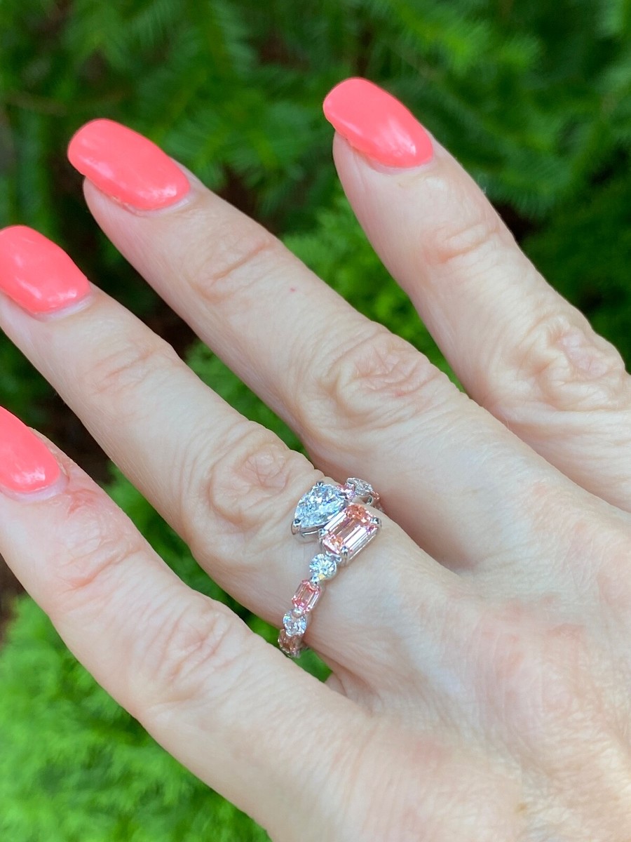 Deux pierres 2.40ct rose rose Emerald Cut Pear Lab Lab Grown Diamond Bypass Ring 14K Gold