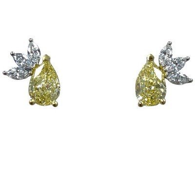 IGI 2,88 CT poire cultivee en laboratoire blanc jaune diamant boucles d'oreilles a tige en or 18 carats