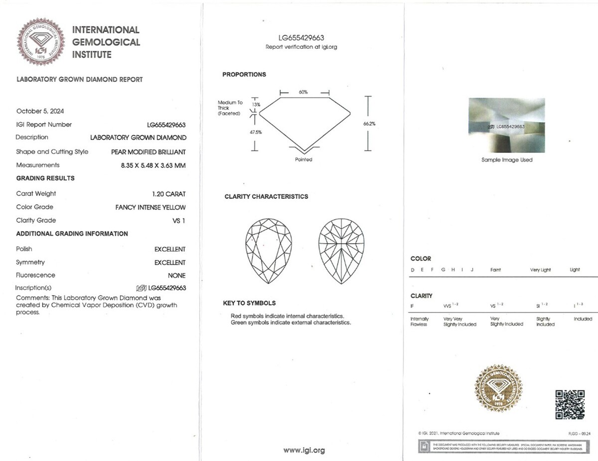 Les boucles d'oreilles sont accompagnees de certificats de l'Institut international de gemmologie (IGI).