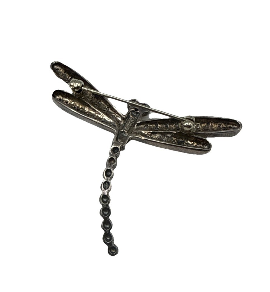 Vintage Sterling Silver & Marcasite Dragonfly Brooch Pin 10g Unsigned Thai