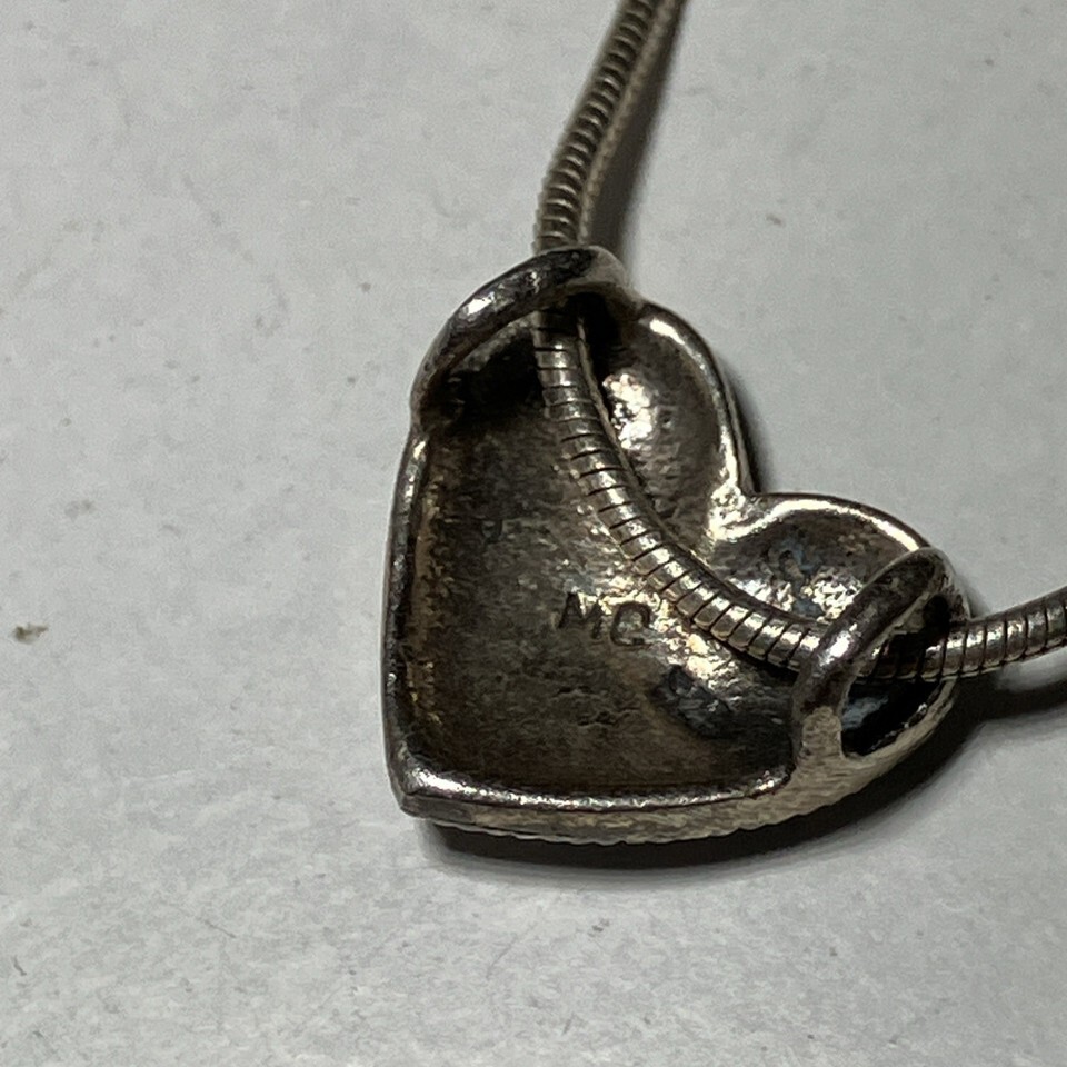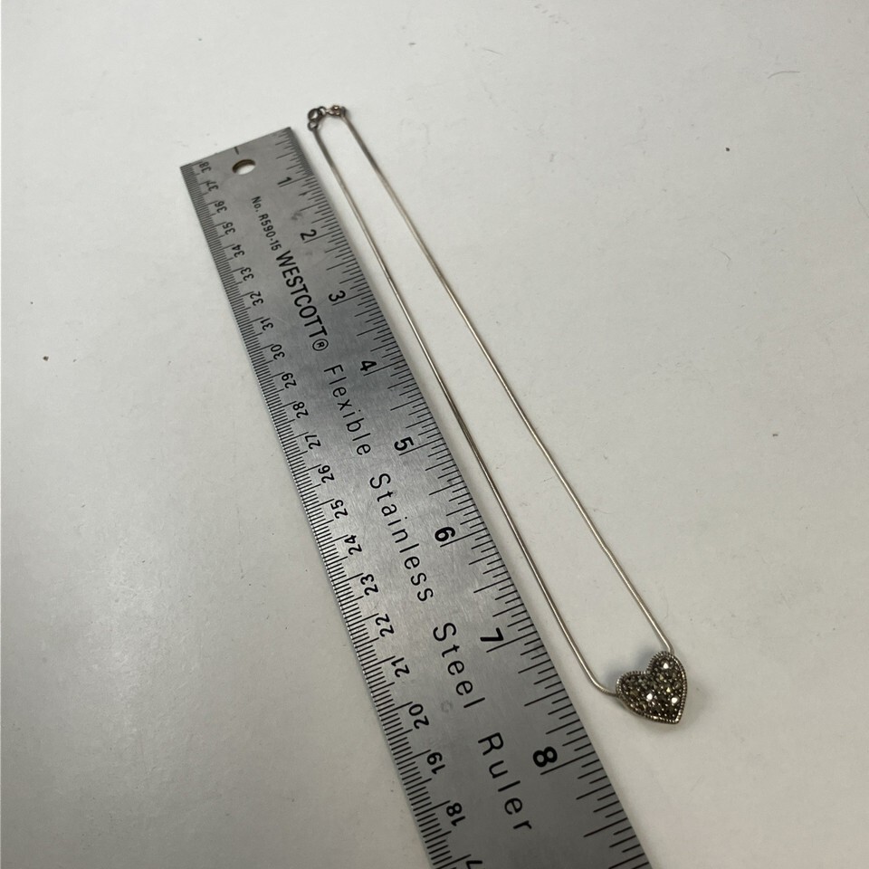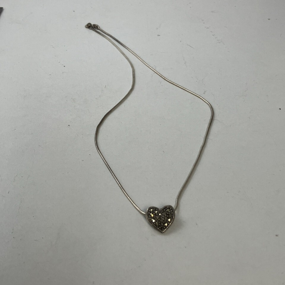 Sterling Silver MC 925 Marcasite Heart Pendant & 16” Snake Chain Necklace