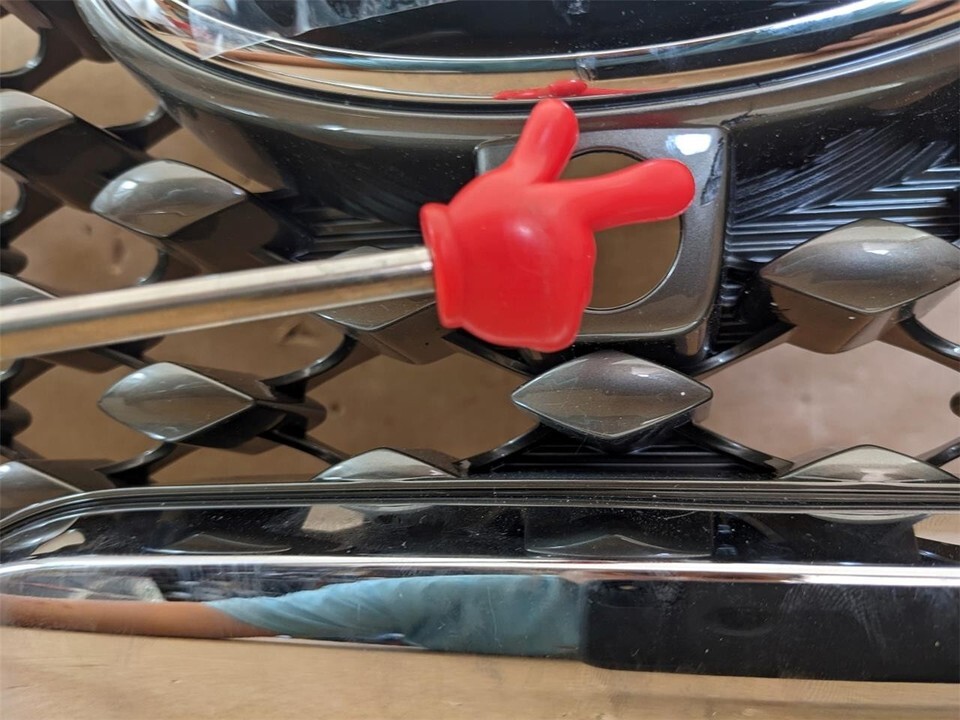 This grille will come with a small blemish as shown in image 2. Also the camera WILL NOT come with this grille. Please reference the images below and part number provided to insure that you're ordering the correct grille for your vehicle.