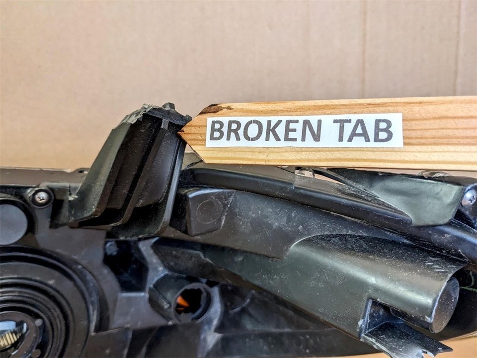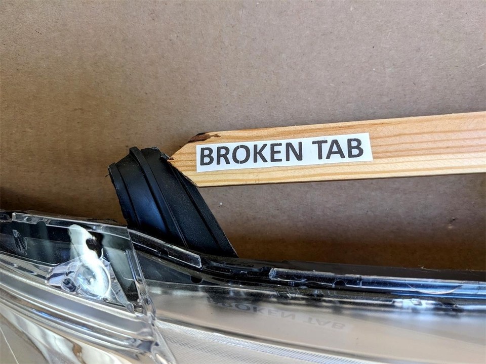 This light will come with minor cosmetic blemishes due to storage, shipping, and handling and a broken tab as pictured in images 5-7. Please reference the images below to insure that you're ordering the correct part for your vehicle.