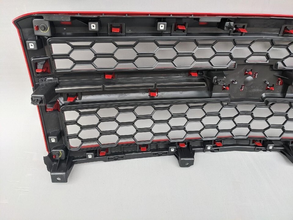 It is a brand New in the box GM Genuine Grill Assembly in Victory Red. Has the honeycomb grill inserts