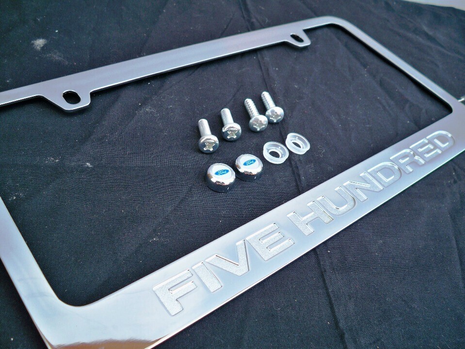 This listing is for one chromed license plate frame that is compatible with Ford Five Hundred
