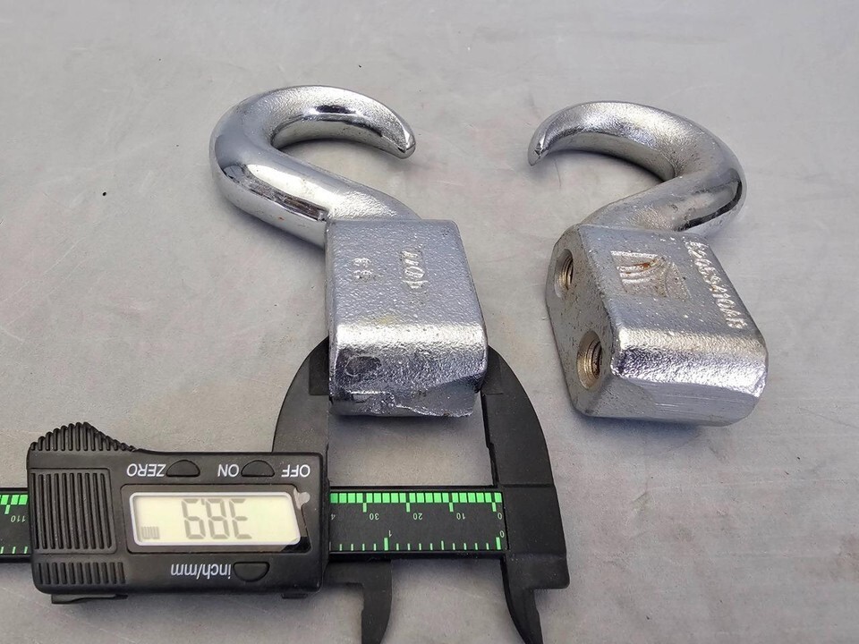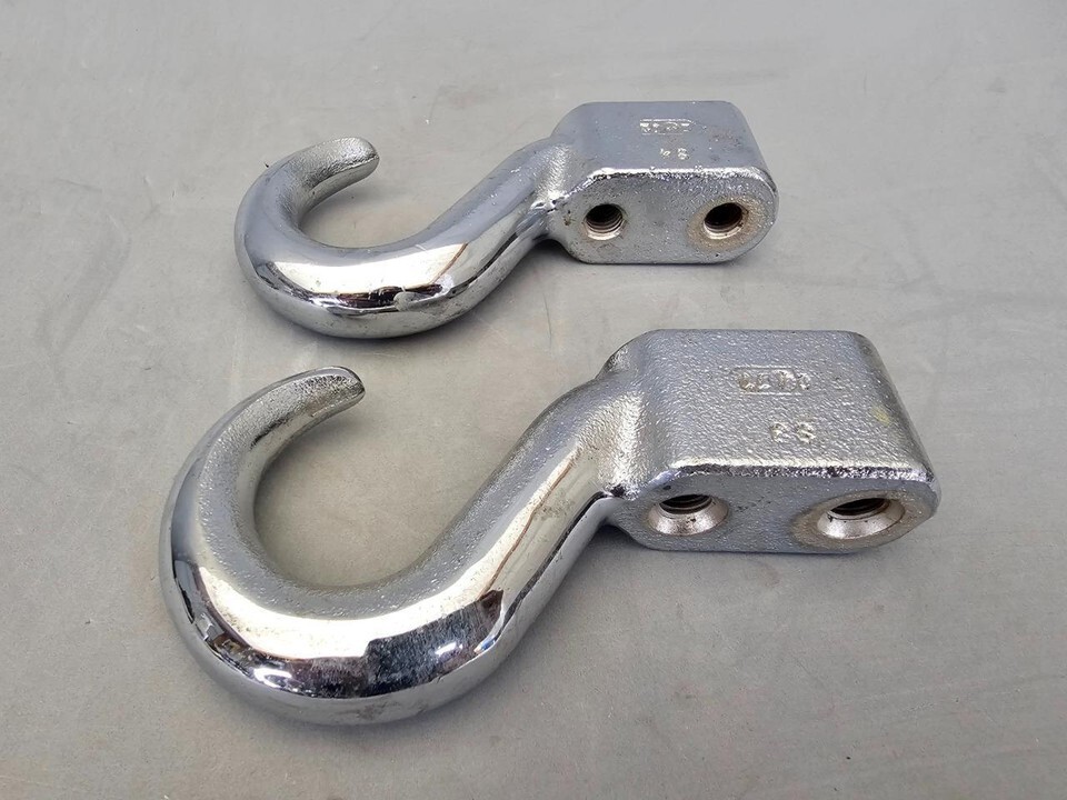 This listing is for a pair of OEM Chrysler Chrome Tow Hooks. Its all about the quality and about the Genuine OEM brand. It can be rigged to any Jeep or any truck. I put the dimensions on the pictures.