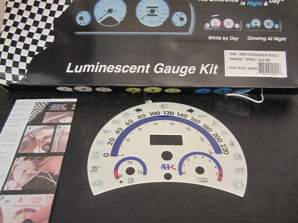 This listing is for a set of glow gauges by APC that fit 1998-2004 VW Beetle with manual transmission and 220KPH cluster only (it will not fit automatic, and it will not fit turbo).