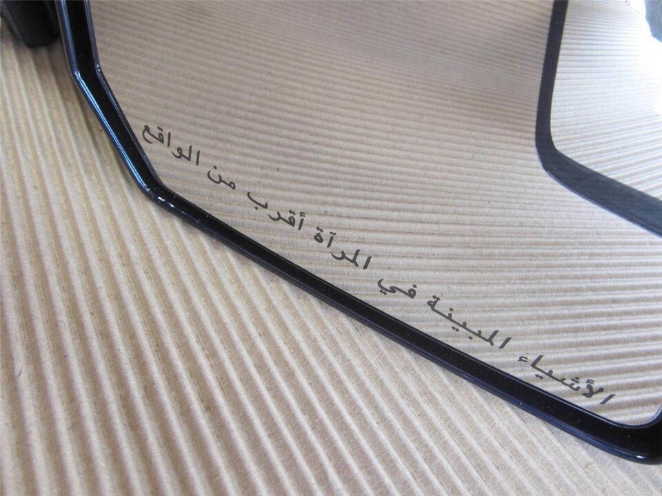 Please take a close look at the writing on the mirror, it is in ARABIC. If you are looking to replace the housing, you can just switch out the glass from your old mirror.
