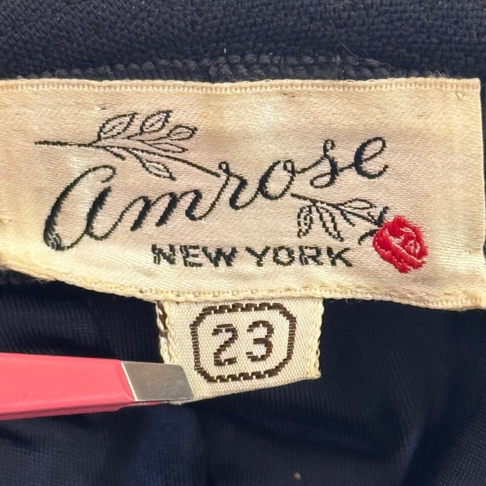 Elegant vintage Amrose New York women's wool hat from the 1950s, crafted in deep navy felt with a softly structured crown and gently rolled brim. Fully satin-lined with the original Amrose New York label and clear crown protector?hallmarks of fine mid-century millinery.