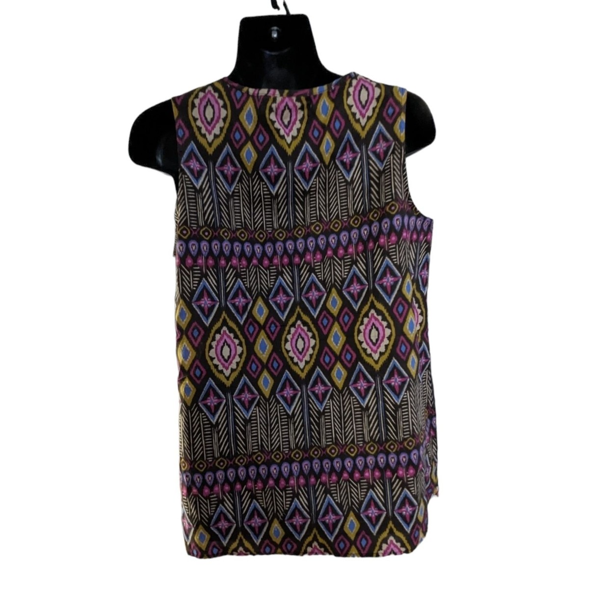 Womens Izod Brown Mahogany Tribal Print Crochet Crew Neck Tank Top Shirt Small S