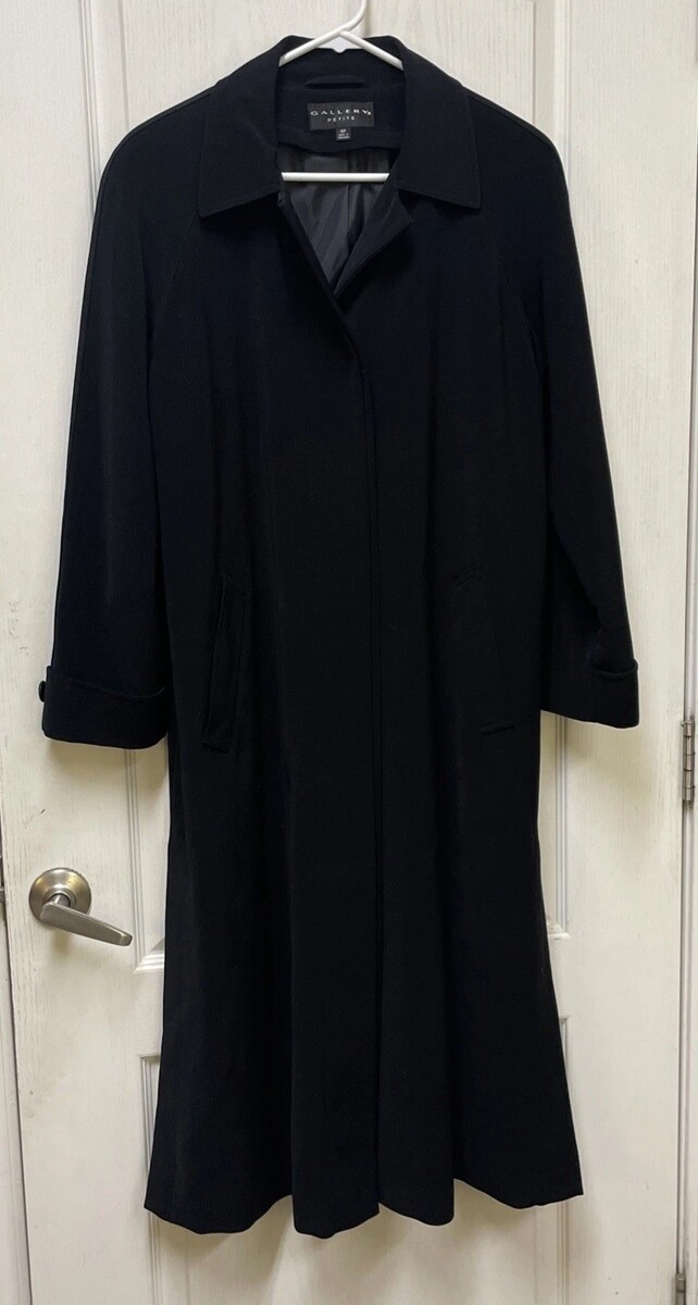 Womans Long Winter Coat Gallery Petite Black Lined Hidden Button Front Size 4P