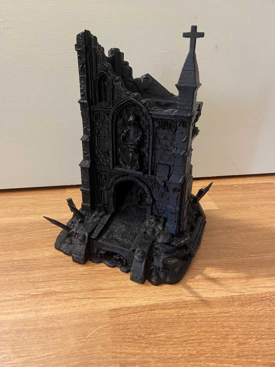a unique Dice Tower with a cool medieval theme great for any board game. A great addition to any DnD adventure with your friends. Step back in time with our exquisitely crafted Medieval Dice Tower, a harmonious marriage of history and play. This antique-inspired tabletop accessory isn't just a tool—it's a journey into the past, where every dice roll carries the echoes of ancient castles and medieval quests. The delicate woodwork and authentic detailing transform every game session into an immersive experience, as if your gaming table has been transported to a grand hall of yore. The soft clatter of dice cascading through the tower is both enchanting and reminiscent of a knight's footsteps on cobblestone. This dice tower promises more than just functionality; it ensures that your games are steeped in the rich tapestry of history. Whether for board game enthusiasts or medieval aficionados, this dice tower is a worthy addition to any collection. With every roll, let the stories of the past guide your game. Custom colors available just send me a message on the color you have in mind. Use as is or paint it to better match your DnD adventure.