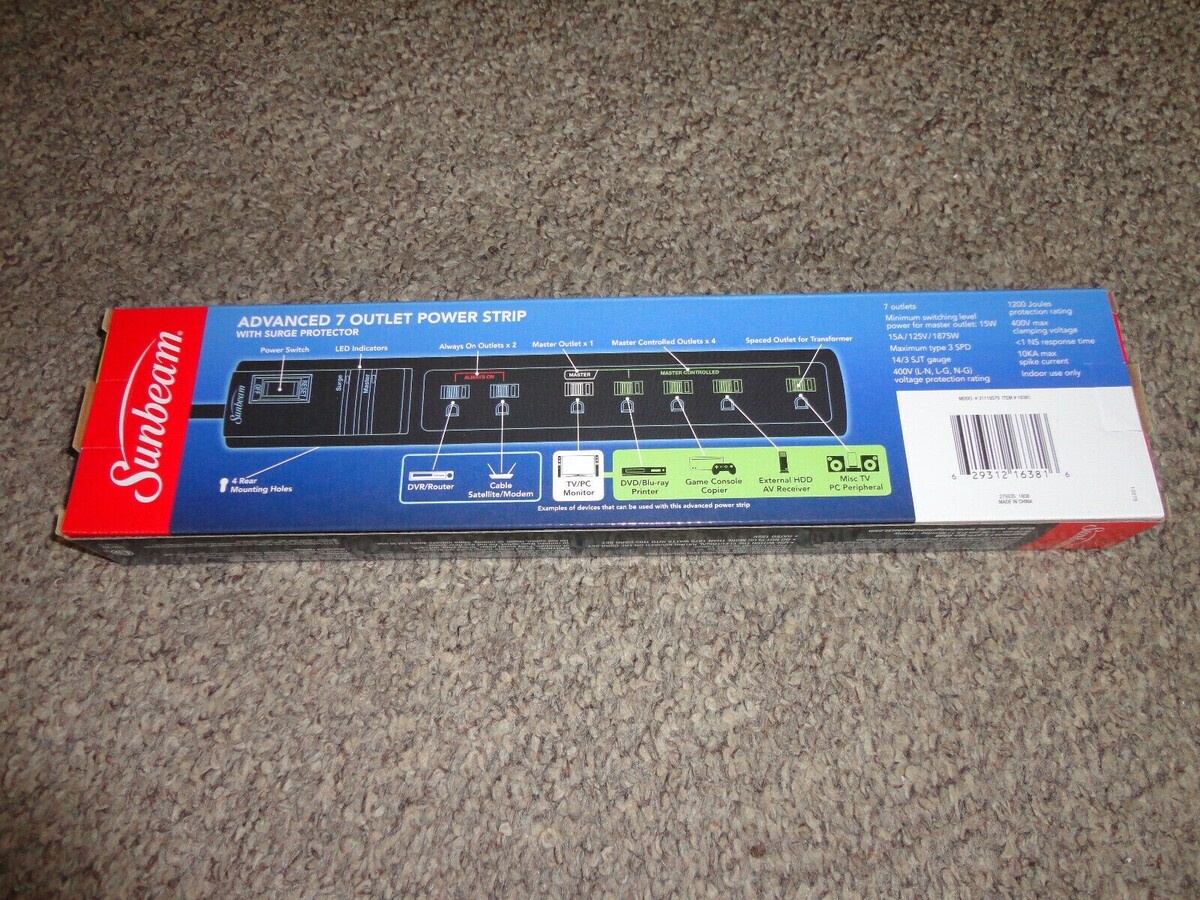 Sunbeam Advanced 7 Outlet Power Strip with Surge Protector BRAND NEW!!