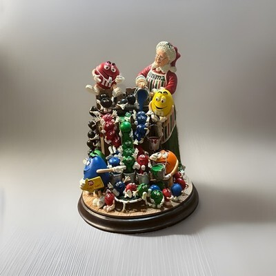 The Danbury Mint M M Candy Mrs Claus figurine stands at 8 1/2" tall, featuring the iconic character of Mrs Claus in a multicolor glossy finish. Made of resin and originating from China, this collectible piece is intricately designed with attention to detail. The M M Candy theme adds a playful touch to this holiday and seasonal figurine, making it a charming addition to any collection. this is in beautiful condition with the exeption of the green m m hand broken off i glued it back on but could come off again the hands are very delicate please be careful removing from box .
