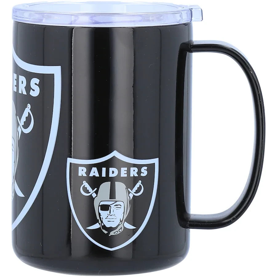 Raiders Oakland Las Vegas 15 oz Hype Lidded Coffee Mug Tea Cup Stainless Steel