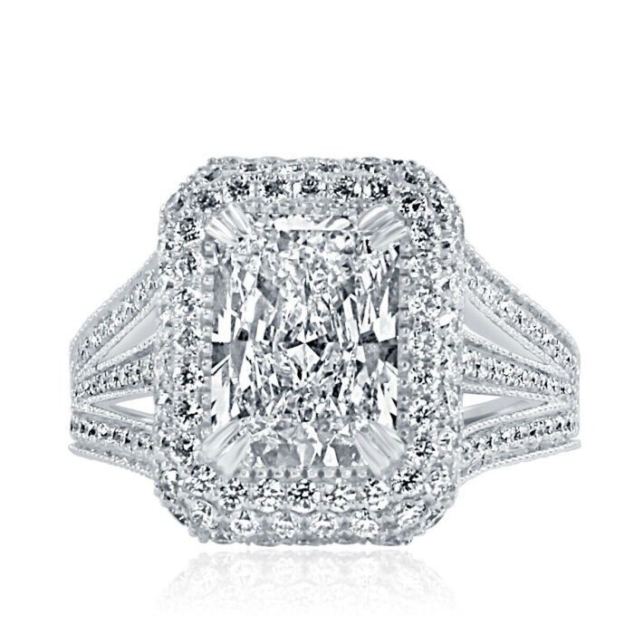 IGI 3.04Ct F-VVS2 Radiant Cut Lab Grown Diamond Engagement Ring 14k Gold 5.27Ctw